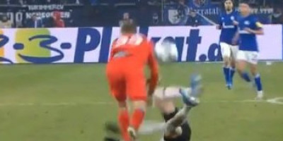 Golman Šalkea Aleksander Nubel pokušao je da stigne do jedne lopte pre Srbina, ali podigao je visoku nogu i udario u grudi našeg vezistu.