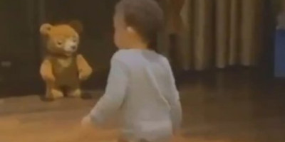 On je rešio da odigra partiju fudbala sa sinom. Mališan tek što je prohodao, ali već zna da šutira loptu. Pokazao je zavidno umeće, a golman meda nije imao nikakve šanse.