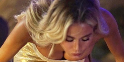 U predivnoj zlatnoj haljini sa dubokim izrezom i otvorenim dekolteom gasila je svećice na torti. Objektiv je sjajno uhvatio momenat kada se sagla da dune svećice... Na radost svih mušakaca u prvi plan su "izbile" njene bujne grudi.