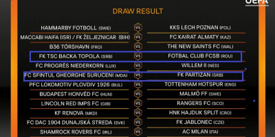 ŽREB ZA LIGU EVROPE! Partizan ide u Moldaviju, a TSC čeka Rumune!