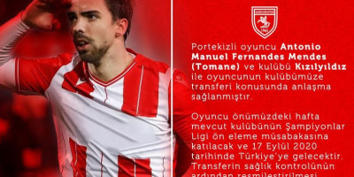 Samsun je potvrdio dolazak napadača Crvene zvezde Tomanea, uz napomenu da će ugovor i biti ozvaničen kad Portugalac prođe lekarske preglede.