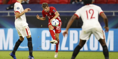 Sevilja je prva povela na ovom meču golom Okamposa, ali Bajern preko Gorecke poravnao na 1:1, što je bio i konačan rezultat na kon prvih 45 minuta.