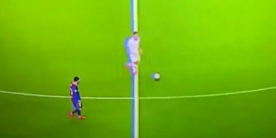 Mesi očigledno može da radi šta hoće, pa i da nonšalantno gleda protivničkog igrača kako protrčava sa loptom pored njega i da ga ne napadne.