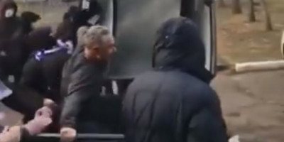 Tako su novog direktora "Gagarina" Oleksandra Ovčarenka ubacili u kontejner jer je najavio da će klub izbaciti sa satdion. Njih 30-ak je dočekalo Ovčarenka ispred stadiona, a zatim su ga na silu bacili u kontejner za smeće.