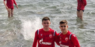 Odradili su crveno-beli prvi trening na Kipru i odmah iskoristili priliku da ua oporavak u moru.