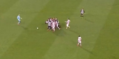 Sejduba Suma nije mogao da se zaustavi i potkačio je nogom Sanoga. Nastala ogromna gužva na terenu! Igrači oba tima su protestovali, bilo je gurkanja, ali je sudija Simović ipak uspeo da smiri strasti!