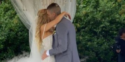 Mladi par je svadbu napravio u Novom Sadu. Vedrana je izabrala venčanicu sa dubokim izrezom koji je isticao noge, dok je i Gaćinović bio zanimljivo obučen pošto je umesto cipela izabrao patike.