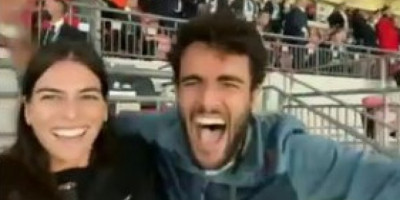 On je sa svojom izabranicom, Aljom Tomljanović gledao meč, a kada je Donaruma odbranio penal Saki, Beretini je burno proslavio.