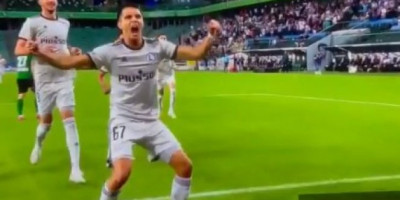 On je već u 3. minutu pogodio mrežu gostiju, gol je proslavio tako što je sa obe noge snažno doskočio na travu.