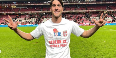 Na jednoj fotografi u pomenutim majicama i sa podignutim prstima su Nemanja Radonjić, Stefan Mitrović i Dušan Vlahović.