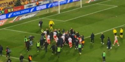 Odjednom je nastala gužva nasred terena, pa je sudija ima pune ruke posla. Došlo je prvo do verbalnog sukoba, a bilo je i gurkanja među igračima.