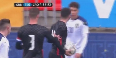 Naime, nastao je fizički kontakt kada je "desetka" hrvatskog tima i član zagrebačkog Dinama Martin Baturina gurnuo Uroša Kabića posle jednog duela kod aut linije.