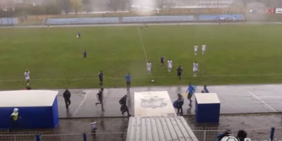 Milan Ilić se pripremao da izvede aut na polovini Grafičara kada ke počela da pada jaka kiša. Fudbaleri su odmah pobegli sa terena, a vratili su se tek nekoliko minuta kasnije.