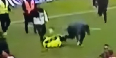 Međutim, nije to najgore, jer se snimku vidi da su navijači napali golmana Balkanija Stivija Frašerija. Jedan huligan ga je sruši na zemlju, dok ga je drugi udario nogom u glavu.