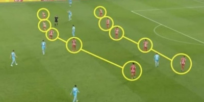 Moglo se primetiti da puleni Diega Simeonea igraju u formaciji 5-5-0. Kad bi Siti imao posed, svih 10 igrača Atletika povlačilo bi se na svoju polovinu bez lopte.