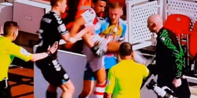 Naime, lopta je izašla u aut, golman gostiju Danijel Bentli je stajao tik do reklama gde je bio napadač domaćih Džejkob Braun. Onda je nastao potpuni haos.