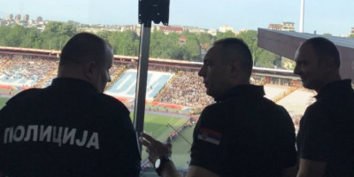Iz komandne policijske sobe na stadionu, utakmicu prati ministar policije Aleksandar Vulin, sa komandantom Zandarmerije Dejanom Lukovićem.