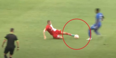 Судија сто посто у праву. Јесте он стигао први до лопте али је након тога отвореним ђоном фаулирао и повредио противничког фудбалера.