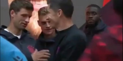 Levandovski je bio vrlo dobro raspoložen kada se rukovao i grlio s nekadašnjim saigračima, ali sa Tomasom Milerom se nije pozdravio kao sa ostalim fudbalerima Bavaraca. Pitanje je da li se zaista samo zbunio ili nije želeo da mu pruži ruku.