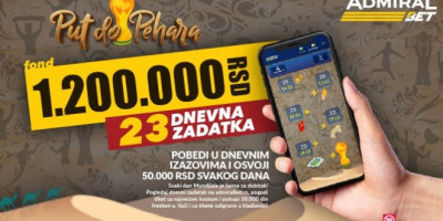 Ono što u ovom trenutku sigurno znamo jeste to da je AdmiralBet obuzela prava mundijalska euforija, gde vas čeka 23 dana dug “Put do pehara” i isto toliko zadataka, sa ukupnim nagradnim fondom od 1.200.000 dinara!