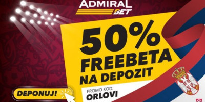 Na svaki vaš prvi dnevni depozit na onlajn nalog, AdmiralBet vas časti sa 30% freebet-a, uz promo kod SP2022, osim onim danima kada igra Srbija – tada vas nagrađuje sa čak 50% freebet-a, uz promo kod ORLOVI, baš kao što je to danas slučaj kada igraju svoj prvi meč protiv Brazila.