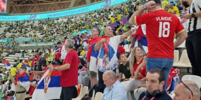 Već su primetni fudbalski sladokusci u dresovim svojih zemalja. Naši navijači su u crvenom, a brazilski u žutom.