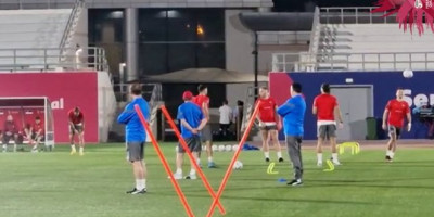 Fudbaleri naše reprezentacije istrčali su na teren, a sastanak pred početak treninga trajao je mnogo duže nego inače.