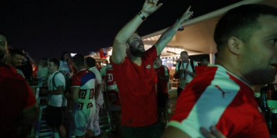 Veliki broj srpskih navijača okupio se na ulicama Dohe, neposredno pored hotela gde su smešteni naši fudbaleri. Već satima traje prava "žurka" među pristalicama Orlova, a na red je došao i Baja Mali Knindža.