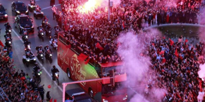 Veliki broj navijača svih uzrasta okupio se duž rute od aerodroma do centra marokanske prestonice, kojom je išao otvoreni autobus u kojem su bili igrači selektora Valida Regragija. Palili su baklje, mahali zastavama i plesali uz ritam bubnjeva dok je autobus prolazio uz veliku policijsku pratnju, a nasmejani igrači i selektor mahali su i slali poljupce svojim oduševljenim navijačima i pravili fotografije sa pristalicama u pozadini.
