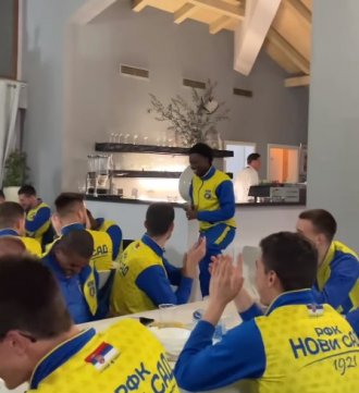 Ostali igrači su odmah počeli da aplaudiraju, a zatim su zapevali složno s njim.
