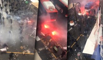 Pristalicama Ajntrahta zabranjen je dolazak na stadion, ali to goste iz Frankfurta nije sprečilo da naprave haos na ulicama Napulja. Oni su u tandemu sa huliganima Atalante ušli u veliki sukob sa policijom, a na jednom snimku se vidi kako pripadnici MUP-a Italije beže kako bi spasili živote pod naletom huligana.