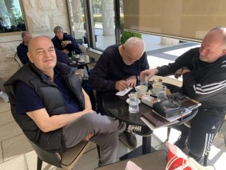 Tamo ih je dočekalo dobro poznato lice - Duško Vujšević. Legendarni košarkaški trener koji trenutno u Studetskom centru obavlja ulogu stručnog konsultanta popio je kafu sa čelnicima fudbalskog saveza Srbije.
