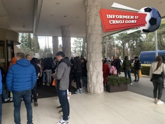 Nešto više od dva sata deli nas od početka utakmice između Crne Gore i Srbije u Podgorici. Orlovi su još uvek u hotelu, a ispred se okupio veliki broj navijača koji žele da isprate našu reprezentaciju do stadiona. Među prisutnima je i nekoliko policijskih patrola koji će obeđivati put na utakmicu.