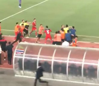 U toku su Igre Jugoistočne Azije u Pnom Penu, a sevale su pesnice u finalu fudbalskog takmičenja između Indonezije i Tajlanda (5:2) igrača do 22 godine.