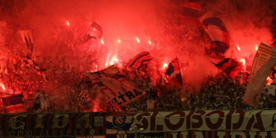 "Nek' živi ljubav, nek' se budi dan, neka svako dete mrzi Partizan. 'Ajmo, Beli, ale, zgazite "grobare", prenose hrvatski mediji povike navijača Hajduka.