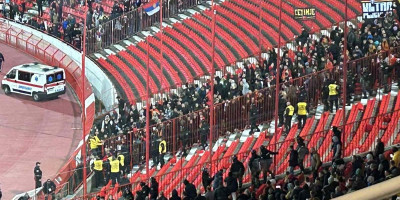 Oni su počeli da lome stolice na ograđenom delu stadiona gde su bili smešteni, a naši navijači im nisu ostali dužni.
