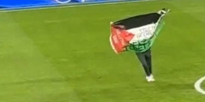 On je tom prilikom u ruci nosio palestinsku zastavu, mahao s njom i očigledno želeo da pruži podršku Palestincima u sukobu sa Izraelom.
