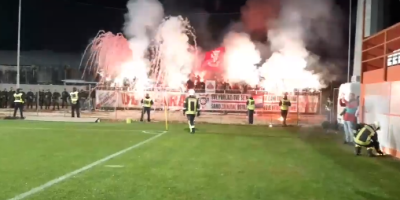 Posle toga je utakmica prekinuta jer su se navijači Zrinjskog potukli sa policijom i na teren su ubacivali baklje i kamenje, a meč je nastavljen nakon što su se strasti smirile, a sa tribina uklonjena skandalozna poruka.