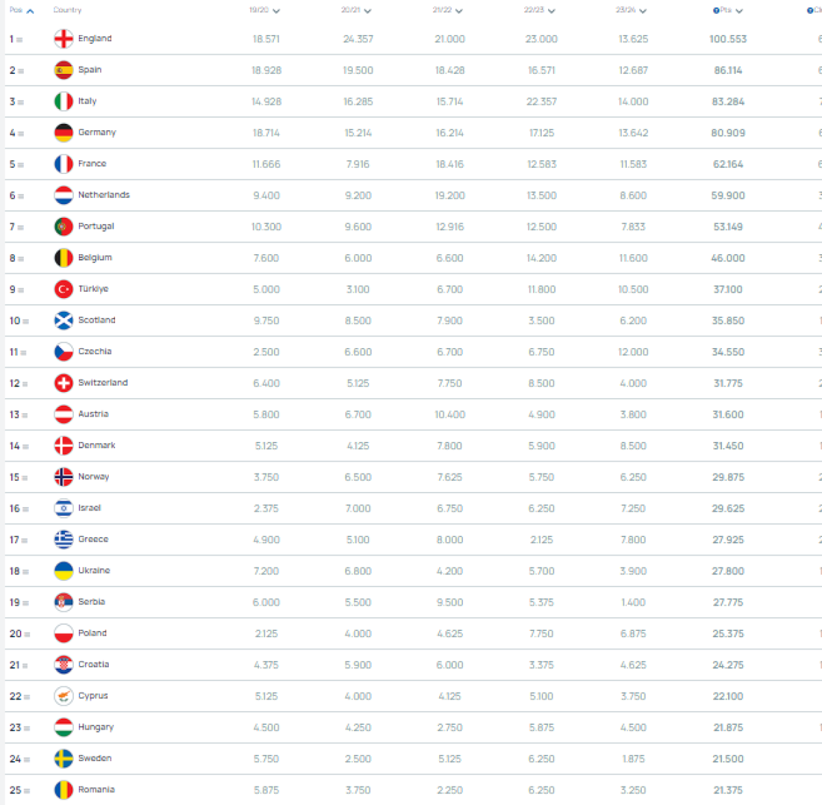 Kada je okončana sezona 2022/2023, Srbija je bila na visokom 11. mestu, ipak samo pola godine kasnije naša država je lošije rangirana za osam pozicija.