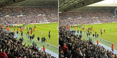 Meč je prekinut u 81. minutu, a razlog je upad domaćih navijača na teren, zbog čega je morala da interveniše policija.