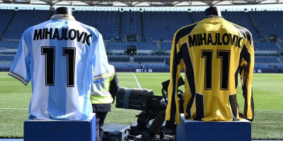 Na tribini sa najverniji pristalicama rimskog kluba se pojavila šetalica sa likom Siniše Mihajlovića. Na teren su postavljeni dresovi iz vremena kada je nastupa za "nebesko-plave".