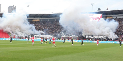 U trenutku kada su fudbaleri oba tima istrčali na teren usledila je bakljada, pa je cela "Marakana" bila prekrivena dimom.