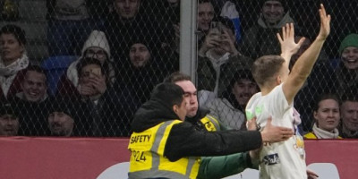 Naime, jedan navijač je uleteo na teren, pa je bilo potrebno određeno vreme da ga obezbeđenje savlada, a policiji da ga sprovede.