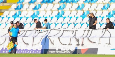 Posle skoro 20 minuta pauze, obezbeđenje je uklonilo transparent sa ograde, pa je utakmica nastavljena.