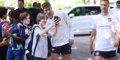 Naime, selekcija Srbije odradila je trening u višenamenskom gradskom sportskom parku u blizini Dunava, a dolazak "orlova" privukao je pažnju navijača i mališana kojima su idoli Aleksandar Mitrović, Dušan Vlahović, njegov imenjak Tadić i ostali igrači našeg nacionalnog tima.