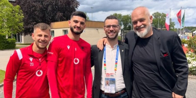 Sadiku je juče objavio fotografiju sa premijerom Albanije Edijem Ramom i fudbalerima te zemlje Jlberom Ramadanijem i Armandom Brojom.