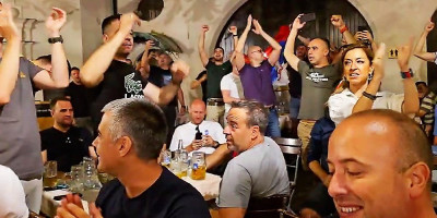 Tokom čitavog dana srpski navijači dominiraju u Minhenu, ne nasedaju na razne provokacije, a posebno emotivno bilo je večeras u "Hofbrauhausu". Veliki broj Srba okupio se i počeo sa navijanjem. U jednom momentu na repertoaru bila je i himna "Bože pravde".