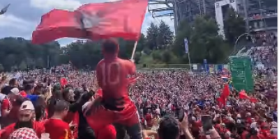 Hiljade ustaša i Šiptara pevalo je spesmu "Bojna čavoglave" pred meč dve reprezentacije (2:2). Tompson je redovno na repertoaru hrvatskih sportista prilikom proslava, a sad su im se pridružila i braća iz Albanije.