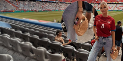 Sofija Milošević, manekenka i nevenčana supruga srpskog fudbalera Luke Jovića, bodrila je danas "orlove" na utakmici koju je reprezentacija Srbije igrala protiv Slovenije.