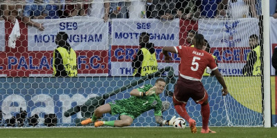 Penal seriju otvorio je Kol Palmer sigurno izvedenim jedanaestercem! Prvi za Švajcarsku šutirao je Manuel Akanđi, ali je njegov očajan udarac Pikford zaustavio! Engleska je imala prednost već nakon prve serije! Staložen je zatim bio i Džud Belingem za ogromnu prednost "Gordog Albiona". Veliki pritisak bio je na Fabijanu Šeru, koji je bio mnogo sigurniji od Akanđija - 2:1!
